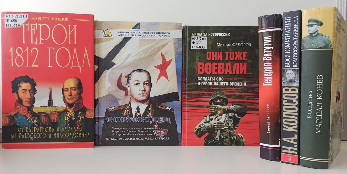 Выставка, организованная в центре книги и чтения, посвящена героям российской истории — тем, кто в разные эпохи отстаивал независимость и честь нашей Родины. Экспозиция поможет прикоснуться к славному прошлому страны, узнать о подвигах соотечественников и почувствовать гордость за их мужество и самоотверженность. На выставке будут представлены книги о выдающихся полководцах и флотоводцах; биографии героев Великой Отечественной войны; мемуары и воспоминания участников исторических событий; издания о современных героях, проявивших отвагу. Источник: culture.ru |
