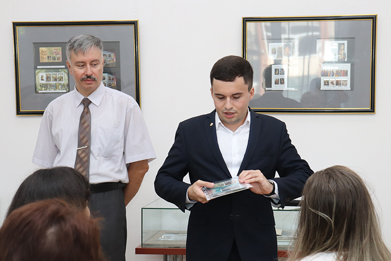 Мероприятие состоялось 26 июля. На выставке представлена коллекция марок, посвященная творчеству крупнейших русских живописцев Ивана Шишкина, Архипа Куинджи и Ивана Айвазовского, а также великого творца эпохи Возрождения Леонардо да Винчи и известного французского художника Эдуарда Мане. Художественные миниатюры сопровождаются красочными альбомами из фондов областной библиотеки. Авторы выставки, известные в Рязани филателисты Владимир и Алексей Туарменские, рассказали о своей коллекции, которая собирается в их семье уже не одно поколение. Заслуженный работник науки и образования, доцент кафедры философии и истории Академии ФСИН РФ Владимир Викторович Туарменский собирает марки с начала 80-х гг. прошлого столетия. Традиции коллекционирования продолжает и его сын Алексей, выпускник Института иностранных языков РГУ им. С.А. Есенина, победитель регионального конкурса «Студент